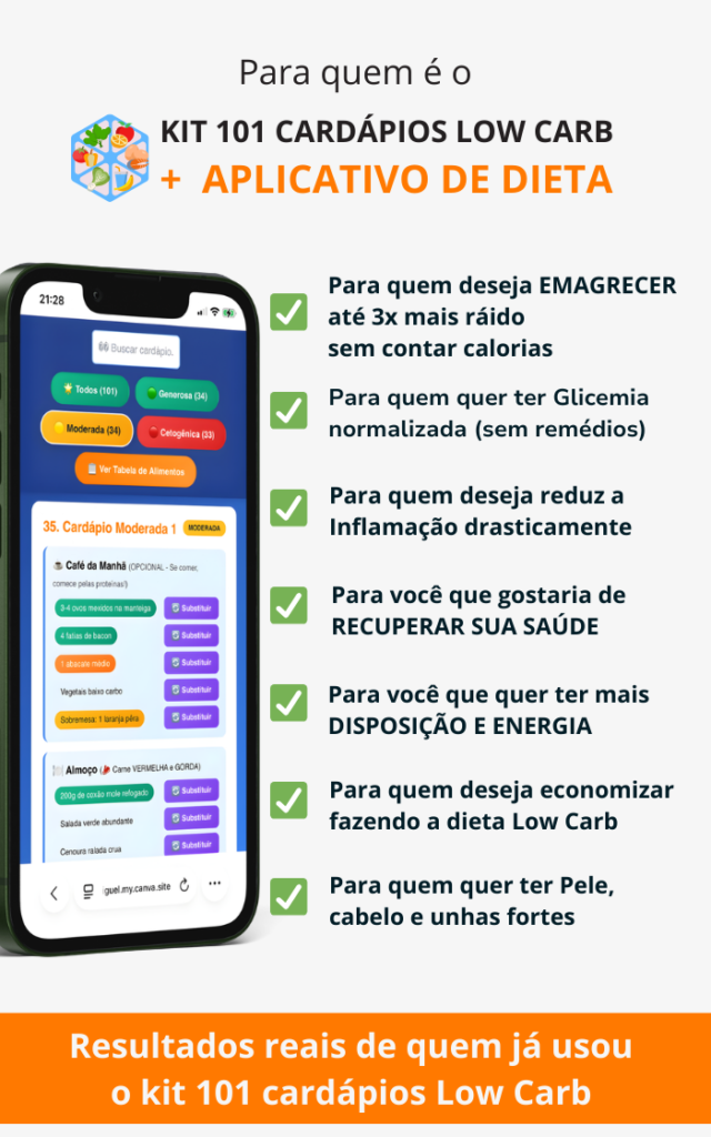 Veja tudo que você vai receber dentro do Kit 101 cardápios Low Carb
